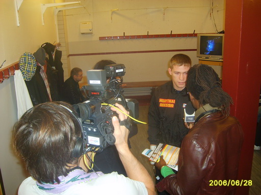 Artur Kishenko(Ukraine) vs Abdoulie Joof / Sweden/ Бой, как и предполагался вышел очень упорный и сложный. Так как Жуф -соперник Артура, как мне показалось с трудом «влез» в весовую категорию 74 кг. В 2007году Жуф представлял сборную Швеции в весовой категории до 91 кг. Тогда он проиграл капитану сборной Украины Максиму Неледве. Готовиться пришлось «в слепую» потому что не было не информации , не видео предыдущих боев Жуфа. Единственный бой нам предоставил Максим Неледва из своего архива http://kombat.odessa.ua/news/example/index.php?id=87 Первый раунд: Жуф наносит очень тяжелые удары ногами по корпусу ,но Артур прогибами и разрывом дистанции заставлял соперника промахиваться и проваливаться ,пользуясь провалами Артур часто высекал Жуфа, в результате чего соперник часто оказывался на полу. Из–за своего физического превосходства Жуф занял атакующую тактику ведения боя .Увлекшись своими атаками Жуф пропустил удар ногой в голову, после чего оказался на полу. Но раунд уже заканчивался и Артур не успел добить соперника. Второй раунд: Соперник вышел очень собран ,все попытки Артура попасть в цель сильными ударами заканчивались попаданиями по четкой защите .Тогда мы решили изменить тактику ведения боя. Было принято решение работать на скорость легкими ударами, «закручивать» соперника, усыпать буквально градом ударов .И это дало свои плоды ,во втором раунде Артур попал своим коронным ударом по печени. Жуф поджал локоть и добегал концовку раунда .Третий раунд :было видно что соперник устал ,но он не собирался сдаваться ведь бой у него дома, а дома, как говорится и стены помогают. Артур уже не менял тактику, легкими и быстрыми ударами буквально переиграл соперника ,так как сильные удары забирали много сил ,а Жуф хорошо сгруппирован и перекрыт. В результате –лучший бой турнира и ПОБЕДА!!! P.S. Как сказали зрители,бой Артура, стал бриллиантом турнира и это радует.