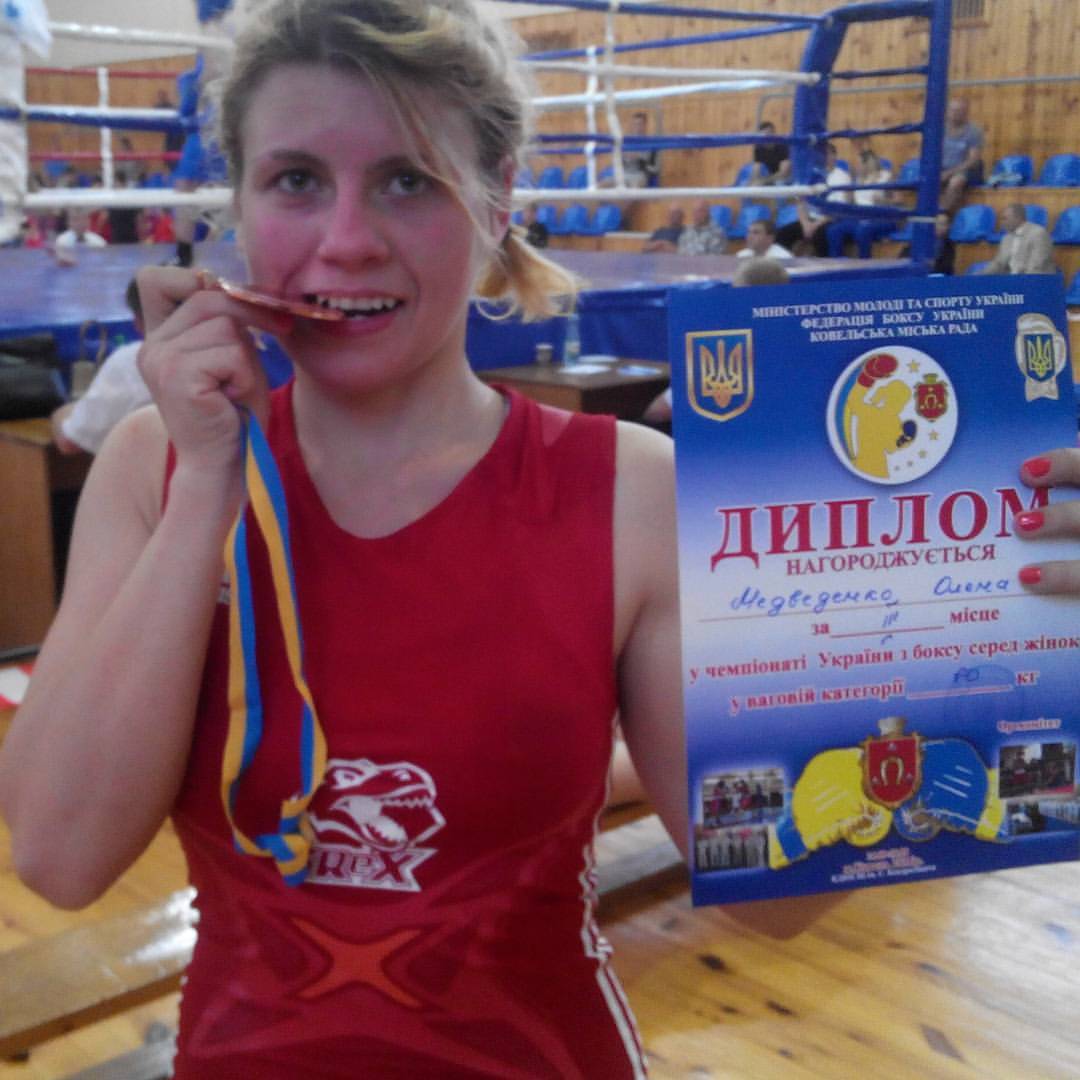 Елена Медведенко: Это судьба 🙂 Я никогда не думала, что буду заниматься боксом. Даже мыслей таких никогда не возникало. Мы ходили с подружкой в этот спортзал так сказать для себя. Я постоянно заглядывалась на тренировки ребят по боксу, которые проводил Андрей Медоян. Он однажды мне сказал: «Хочешь попробовать?». Я согласилась. И вот осталась до сих пор. Мы начали работать.