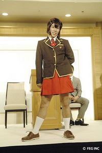 Однако вместо того, чтобы одеть свой привычный аниме-костюм, он был одет как мужчина, как мужчина в женском деловом костюме.
